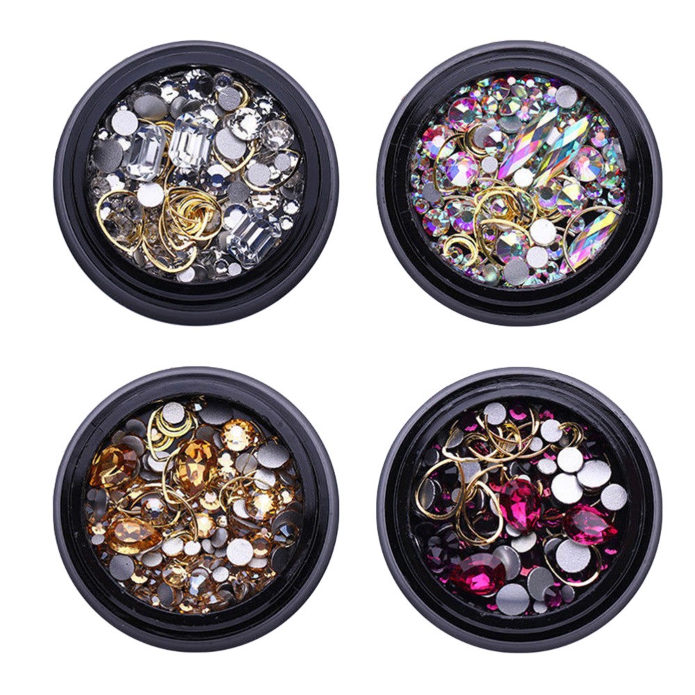 4 Boxes Gold Nail Studs Gems Sparkle Rhinestones Metal Rivets Charms Hollow