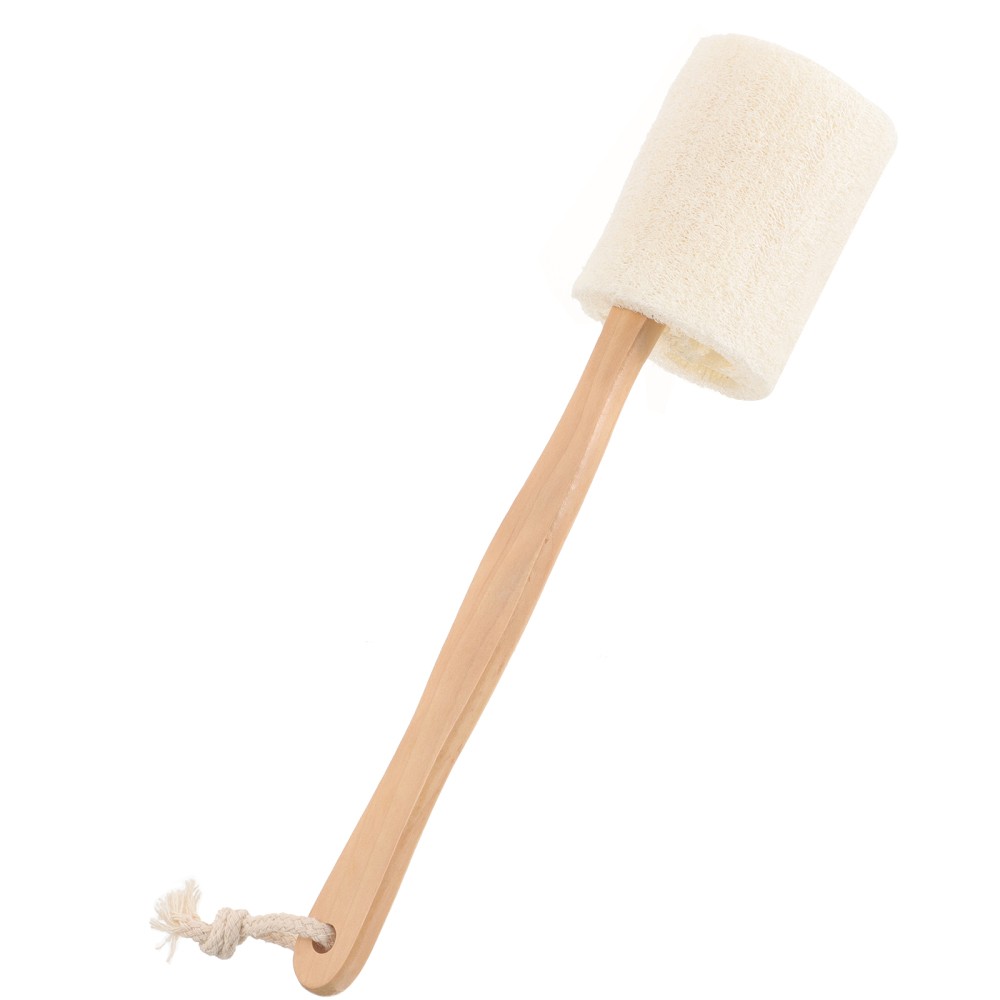 Natural Loofah Exfoliating Bath on A Wooden Handle scrub brush