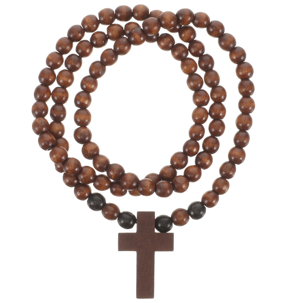 Men's Handcrafted Wooden Cross Pendant Necklace - Fashionable Beaded Chain