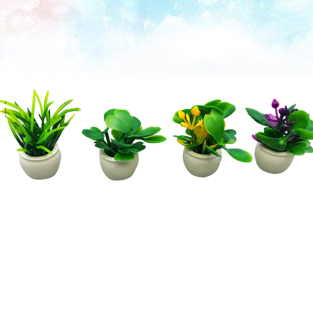 4 Pcs Mini Plant Model Miniature Accessories Flower Pot Ornament